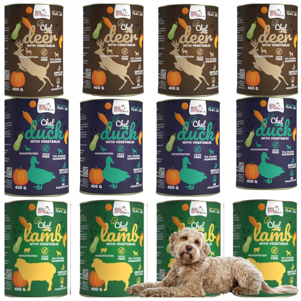 KARMA DLA PSA SYTA MICHA 12 x 400g MIX SMAKÓW MONOPROTEINOWA HIPOALERGICZNA