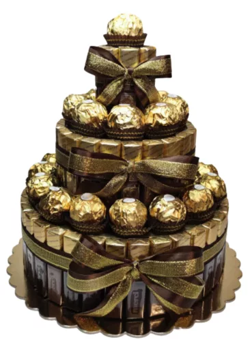 Na tej aukcji polecam piętrowy Nibytorcik z czekoladek Merci oraz pralin Fererro Rocher.