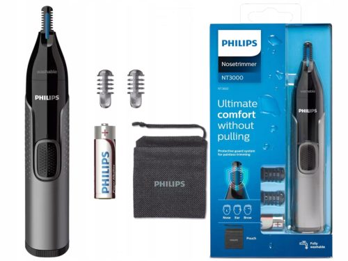 Philips NT3650/16 Rifinitore per naso e orecchie. Funziona a batteria. 2 accessori per sopracciglia