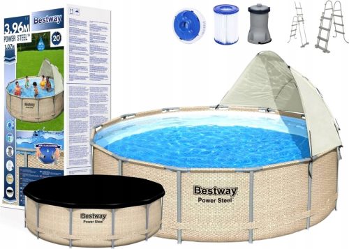 PISCINA CON TELAIO, COPERTURA, SCALA, ACCESSORI 396 x 107 cm