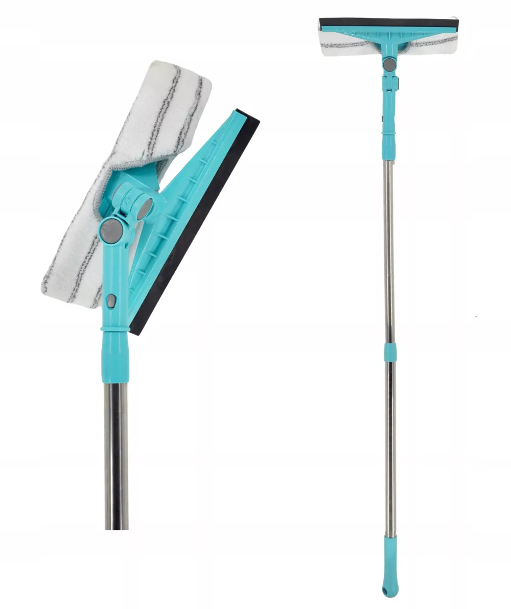 Mop do Okien ze Ściągaczką 2w1 - Obrotowa Głowica 360° - Teleskopowy Kij ze Stali Nierdzewnej