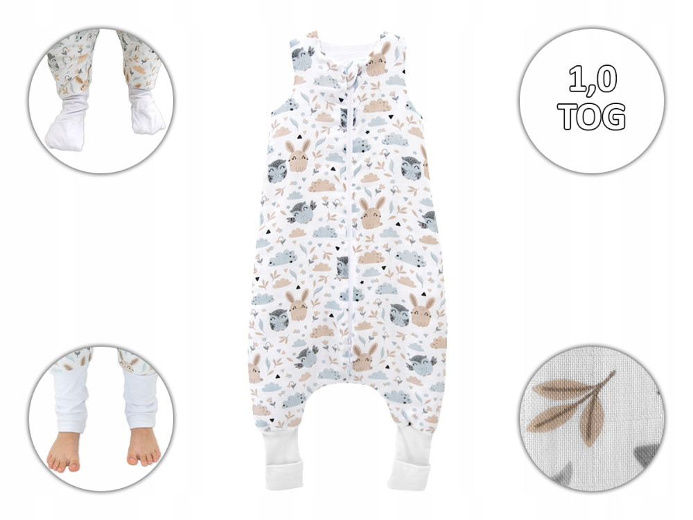 1.0 TOG - Śpiworek Przejściowy: Idealny na okresy przejściowe i zmienne temperatury, w pomieszczeniach o temperaturze 20-24°C . Dostarcza umiarkowanego ocieplenia, sprawdzając się zwłaszcza w chłodniejsze letnie dni, ciepłą wiosną  i jesienią.
