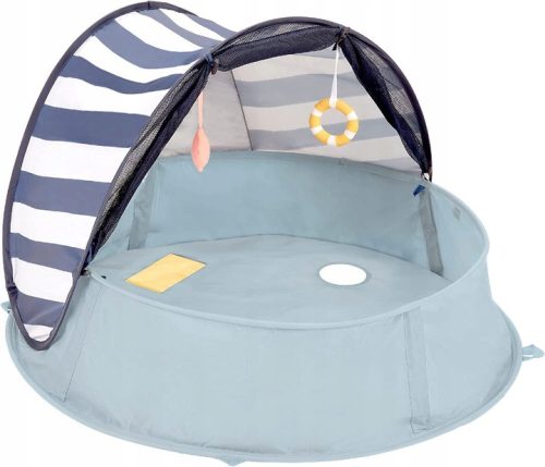 Aquani to rozkładany namiot plażowy dla dzieci, plac zabaw i brodzik. Osłona przeciwsłoneczna blokuje do 99% szkodliwych promieni (UVA i UVB) dzięki wysokiej ochronie tkaniny UPF 50+. Zapewnia również schronienie przed słońcem, wiatrem i piaskiem