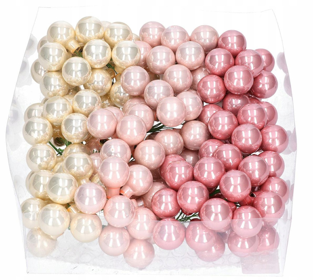 ZESTAW SZKLANYCH BOMBEK NA DRUCIKU - 144 sztuki - różowe perłowe, pudrowy róż perłowy, kremowe perłowe