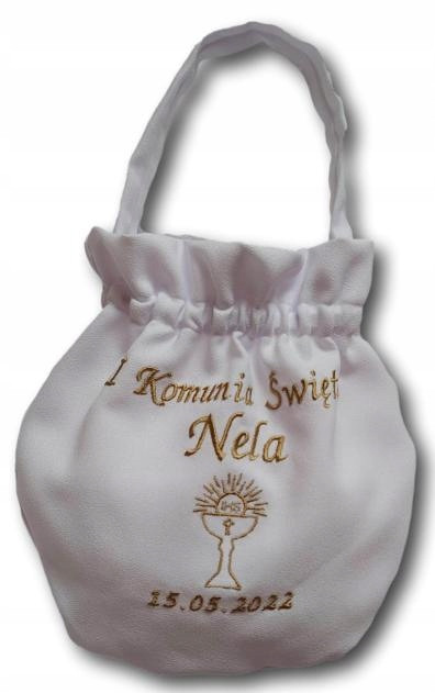 Torebka stanowi świetne uzupełnienie stylizacji komunijnej, jak również jest bardzo praktyczna, pomieści np. książeczkę, różaniec, chusteczki itp.
