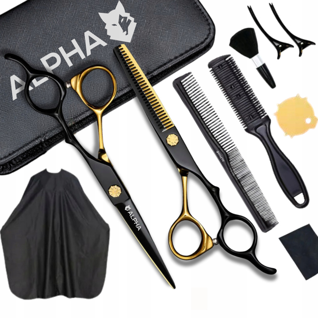 Zestaw Alpha to nie tylko niezbędne elementy wyposażenia salonu fryzjerskiego, ale także must-have dla tych, którzy rozpoczynają swoją przygodę z dbaniem o włosy. Nasze nożyczki i degażówki zostały szlifowane laserowo co gwarantuje Ci ostre i precyzyjne cięcie przy każdym strzyżeniu. Dodatkowo, peleryna ochronna pomoże Ci w dbaniu o czystość i komfort, niezależnie od miejsca, w którym decydujesz się na metamorfozę wybranej fryzury.
