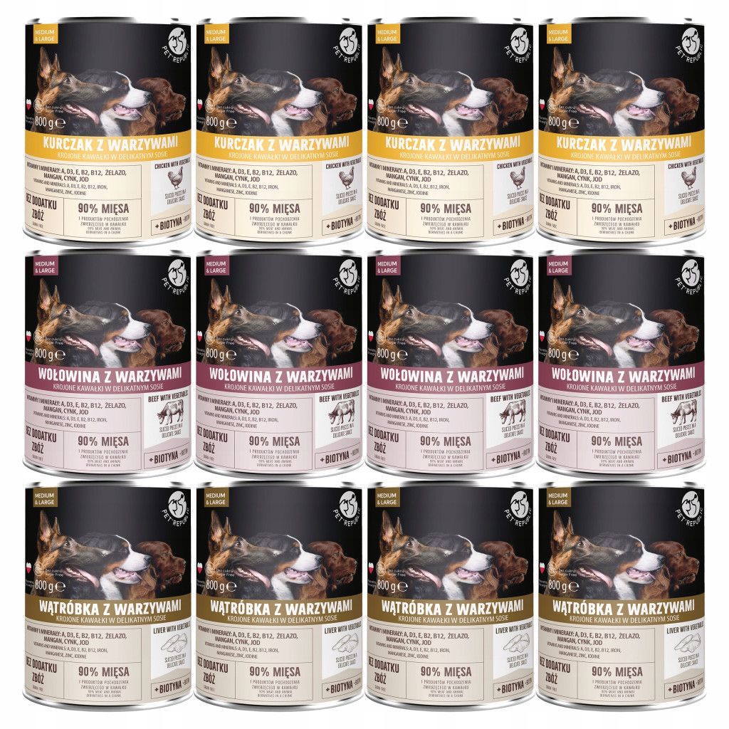 PET REPUBLIC cibo umido per cani in pezzi in salsa, mix di gusti 12 x 800g