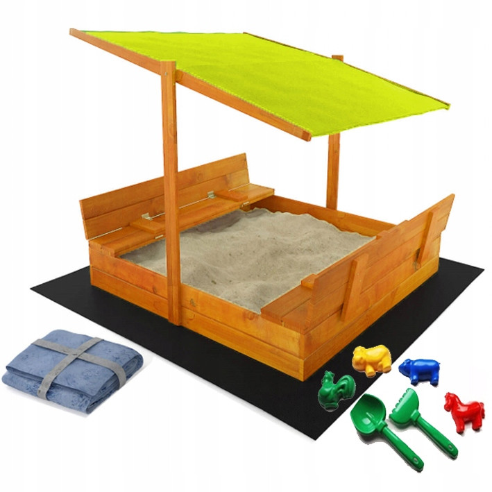 ✨ Drewniana Piaskownica z Ławeczkami i Pokrywą + Daszek  ✨