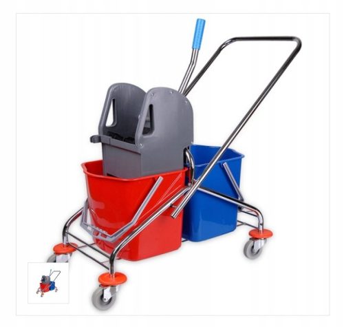 Dwuwiaderkowy wózek do sprzątania marki CleanPRO jest bardzo popularny na wielu obiektach (średnich i dużych) usprawnia prace porządkowe, czyniąc je bardziej efektywnymi.  Wózek do sprzątania jest wyposażony w dwa wiadra o pojemności 25 litrów oraz prasę do wyciskania płaskich mopów.