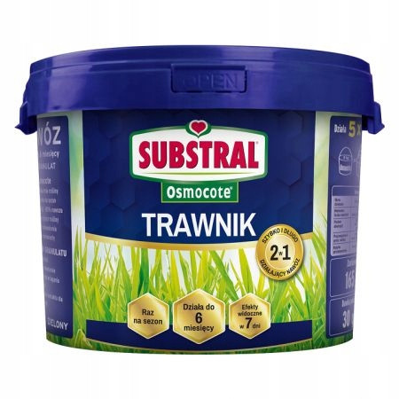 Substral Osmocote 2w1 to extra długo działający nawóz do trawnika. Pierwsze efekty nawożenia zauważysz już po 7 dniach! Odpowiednio dobrane składniki nawozu Osmocote spełniają wymagania trawy i zapewniają widoczne efekty w sezonie. Unikalna formuła polimerowej otoczki sprawia, że pod wpływem wilgoci i temperatury podłoża nawóz stopniowo uwalnia się do gleby. Trawa otrzymuje więc codziennie małą, dostosowana do jej potrzeb dawkę składników odżywczych. Dzięki temu nawóz Osmocote działa bardzo długo, bo aż do 6 miesięcy - wystarczy jedno nawożenie na sezon, bez ryzyka przenawożenia. Nawóz jest bardzo wydajny, rośliny potrafią wykorzystać nawet do 85% składników pokarmowych w porównaniu do zwykłych granulatów, gdzie sięga to zaledwie 25%. Stosować od marca do końca czerwca. Po nawożeniu obficie podlać trawnik, aby nawóz zaczął działać.