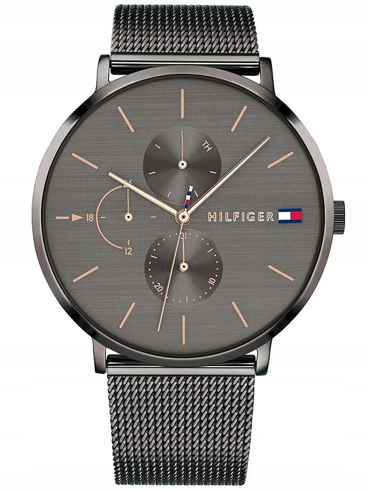 Zegarek damski Tommy Hilfiger 1781945 to klasyczny gustowny damski czasomierz. Zegarek posiada kopertę i bransoletkę ze stali szlachetnej z powłoką w kolorze różowego złota. Na tarczy zabezpieczonej mineralnym szkłem znajdziemy subtarcze wskazujące dzień miesiąca, dzień tygodnia i czas dobowy.