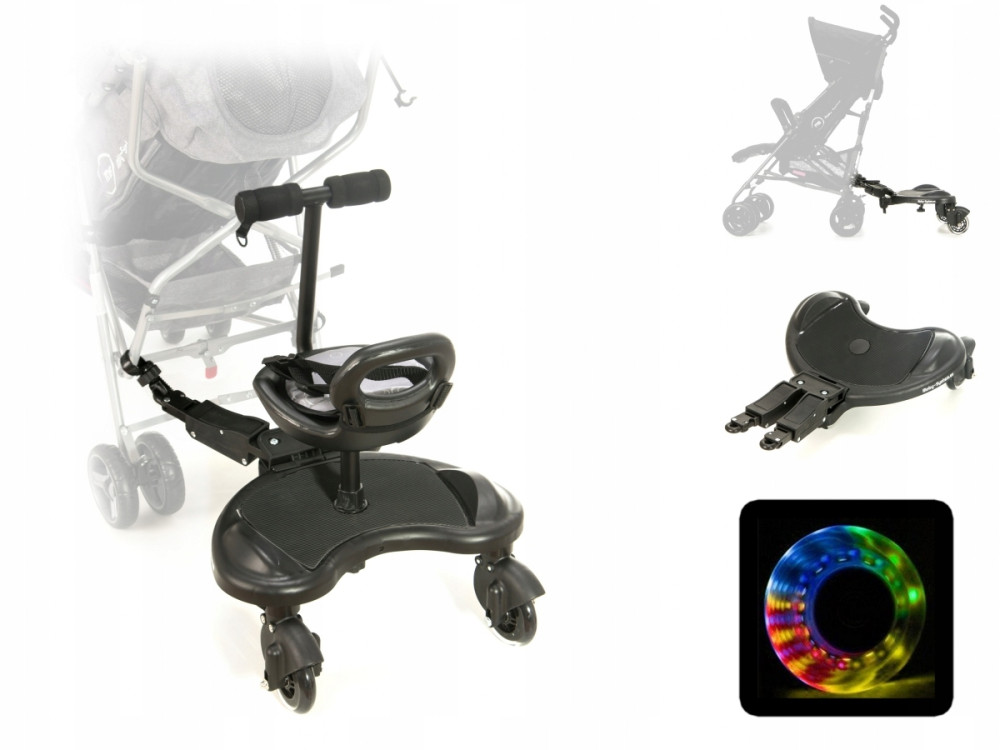 Platforma dla starszego dziecka to popularne rozwiązanie przy wózku dziecięcym. Jej nowy wymiar to opcja siedziska, które z pewnością spodoba się starszakowi. Jeśli dodamy do tego inne udogodnienia, takie jak uniwersalne mocowanie, możliwość montażu siedzenia przodem lub tyłem do kierunku jazdy i wygodne siedzisko – otrzymamy dostawkę idealną!