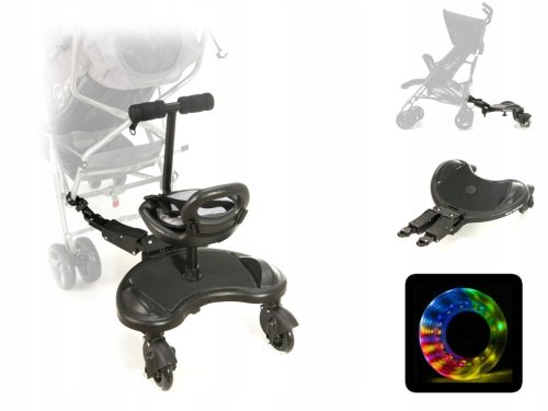 Estensione del passeggino con sedile e schienale, ruote illuminate a LED, pieghevole