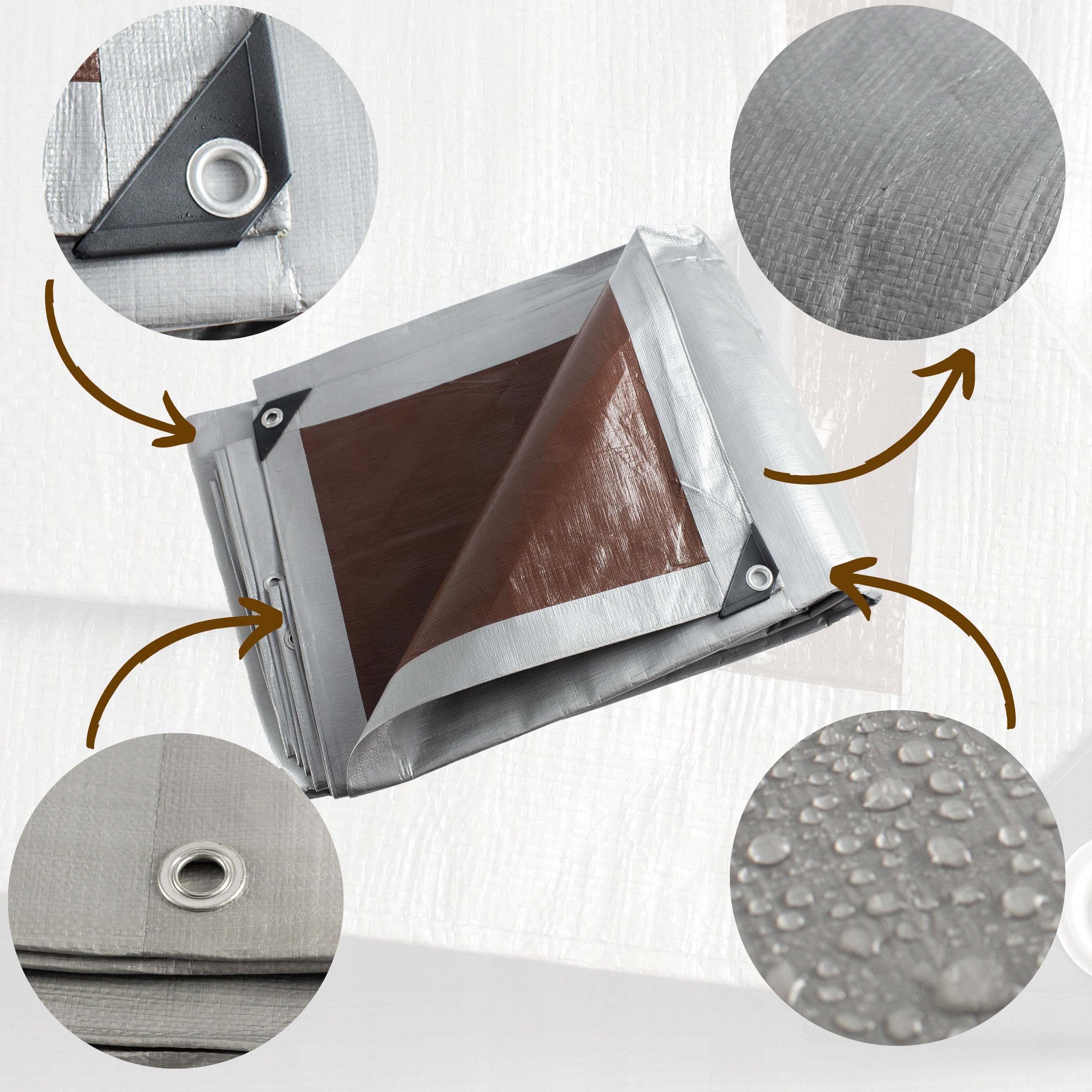 ✅ Wodoodporny materiał sprawia, że podczas deszczu czy śniegu nie przecieknie on na przedmioty, które zostały okryte plandeką.