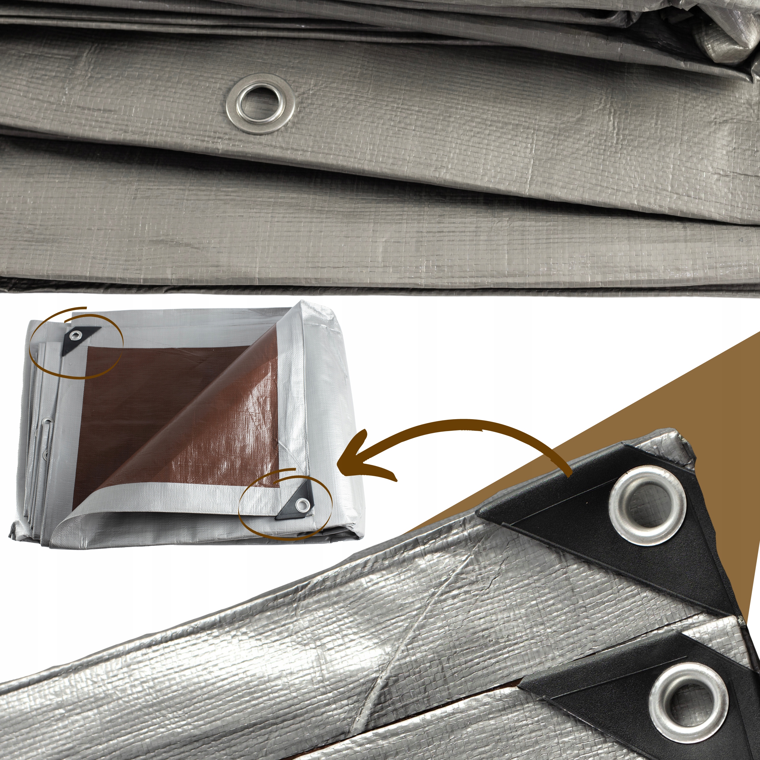 Wzmocnione brzegi i aluminiowe oczka