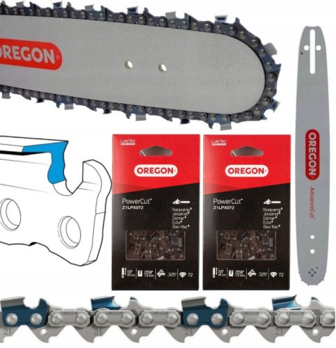 Wysokowydajny łańcuch tnący OREGON PowerCut doceniony przez profesjonalnych użytkowników pilarek. Liczba ogniw: 72 szt. Szerokość rowka: 1,5mm. Podziałka: .325".