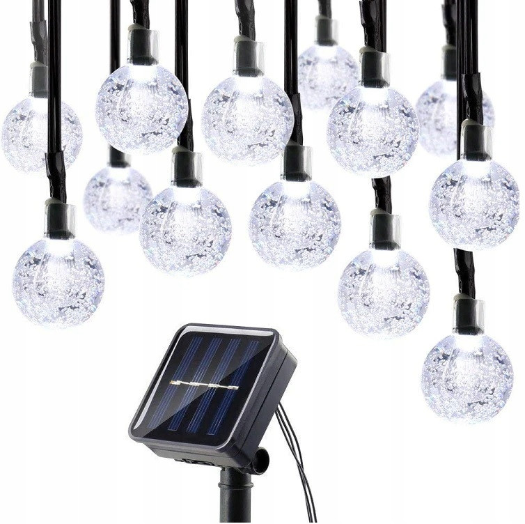 GIRLANDA LAMPKI OGRODOWE SOLARNE 50 LED 9,5M BARWA ZIMNA ZAWIESZKI OGRODOWE KULE