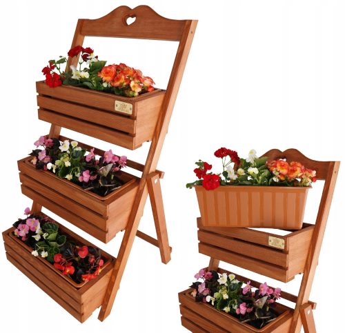 Aukcja dotyczy drewnianego kwietnik / zielnik PREMIUM na trzy doniczki w kolorze JASNO BRĄZOWYM (TEAK), został w całości wykonany z zaimpregnowanego drewna sosnowego, co gwarantuje jego solidną konstrukcję, stabilność i odporność na warunki atmosferyczne.