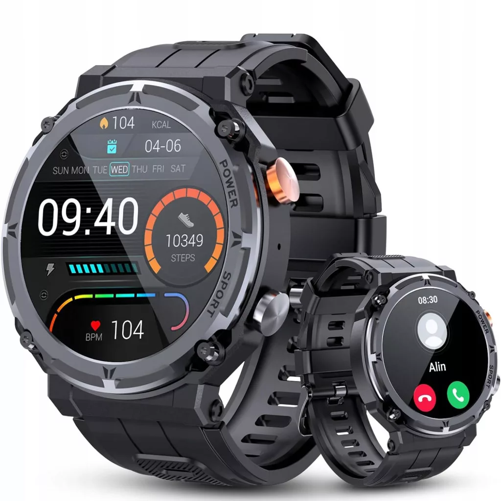 Ten zegarek wojskowy to stylowy i wytrzymały wielofunkcyjny inteligentny zegarek do uprawiania sportów na świeżym powietrzu. Dotykowy ekran HD o przekątnej 1,39 cala ułatwia obsługę.