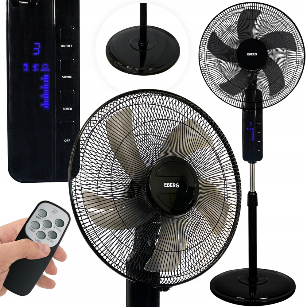 EBERG FLY ventilatore da pavimento, ventilatore da terra, telecomando, LED TIMER SWING, nero