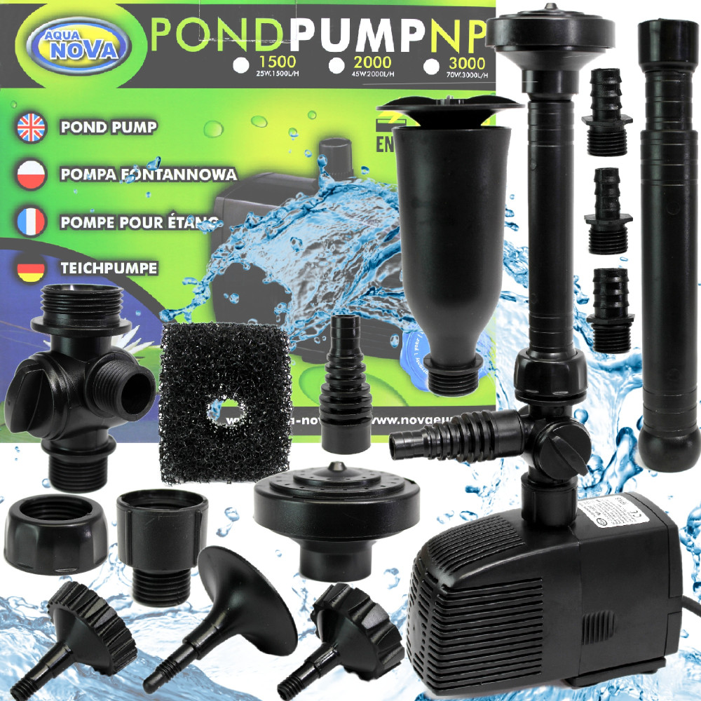 POMPA FONTANNOWO-KASKADOWA  DWA WYJŚCIA 1000L/h + ZESTAW 4 DYSZ FONTANNOWYCH