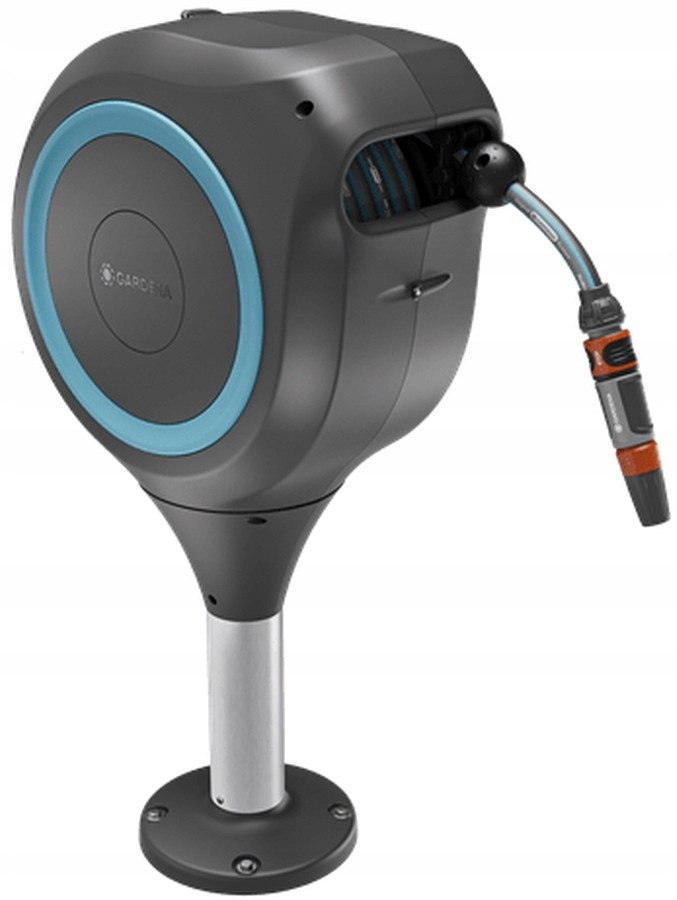 • Kompaktowy: Zwijacz ze zintegrowanym 20-m wężem ogrodowym idealnie nadaje się na tarasy w ogrodach średniej wielkości