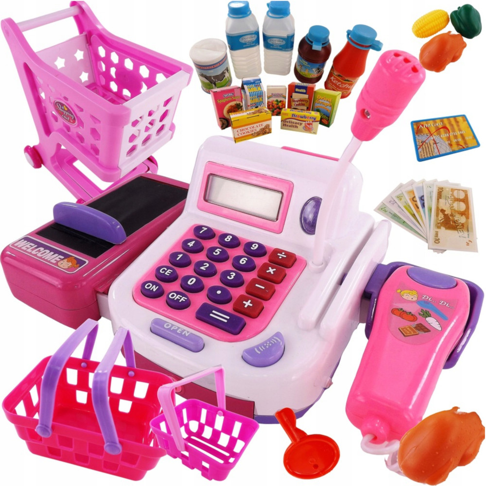 DUŻY ZESTAW ! KASA SKLEPOWA KOSZYK kalkulator