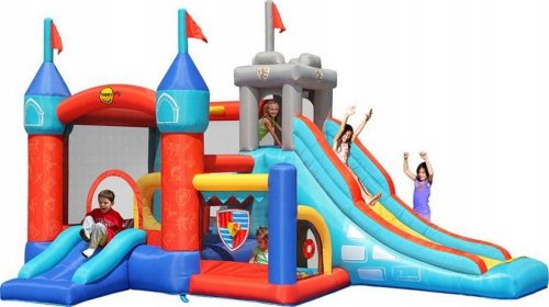 Pełen atrakcji nadmuchiwany zamek doskonale nadaje się do zabawy na świeżym powietrzu.