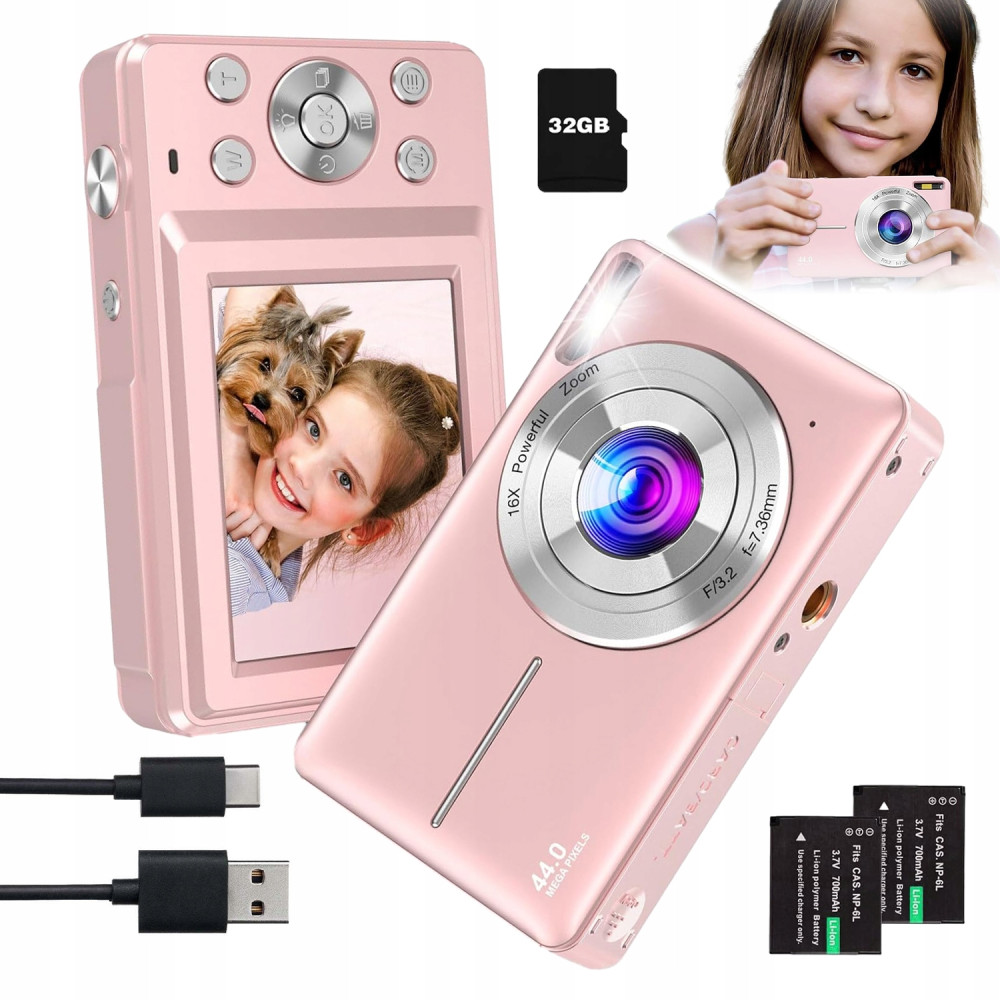 FOTOCAMERA DIGITALE PER BAMBINI FOTOCAMERA 44MP VIDEO HD ROSA 32GB