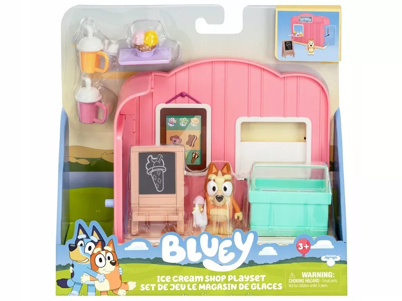 Przenieś zabawną i pomysłową zabawę Bluey do domu dzięki zestawowi Bluey's Ice Cream Shop. Teraz Twoje dziecko może odwiedzić Lodziarnię i pomóc Bingo wybrać jej ulubiony smak lodów! Zestaw ma również otwierane drzwi i okienko do serwowania. Bingo trzyma w dłoni rożek z lodami i porusza się ruchomymi ramionami i ciałem. Figurka i akcesoria są odpowiedniej wielkości, aby mogły bawić się nimi przedszkolaki. W zestawie znajduje się nawet zabawny arkusz naklejek, dzięki któremu dzieci mogą ozdobić wnętrze sklepu w dowolny sposób.