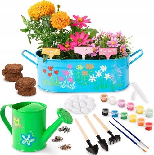 • Dziecięcy zestaw ogrodniczo-malarski - Kwiaty do uprawy - Edukacyjny zestaw narzędzi ogrodniczych do malowania