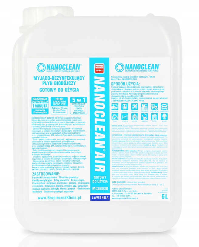 Środek do czyszczenia i dezynfekcji klimatyzacji NANOCLEAN AIR MC - 8803B GDU - gotowy do użycia (KANISTER 5l)