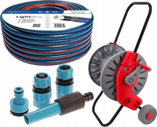 TUBO GIARDINO 4 STRATI 22BAR 1/2" 30M + RACCORDI + CARRELLO, FUSTO, SUPPORTO, BOBINA