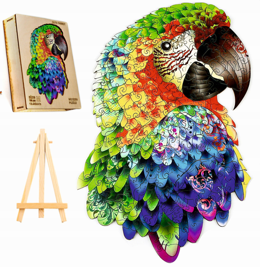 DREWNIANE PUZZLE DLA DOROSŁYCH DUŻE PAPUGA