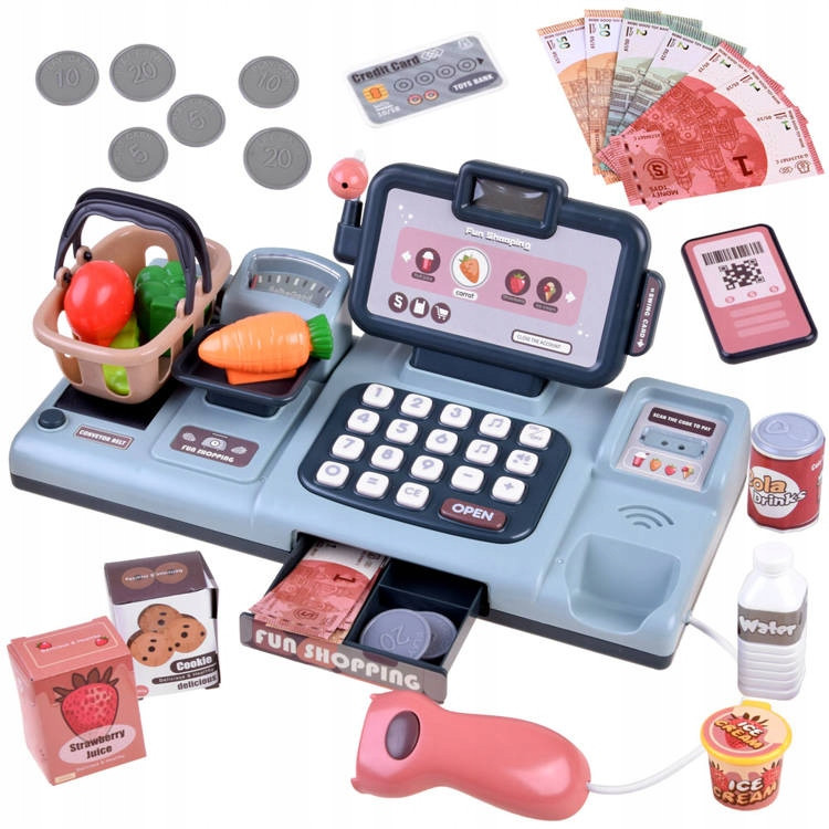To propozycja dla dzieci lubiących zabawę w kupowanie i sprzedaż. Sprawi na pewno mnóstwo radości podczas zabawy. Kasa sklepowa to świetny sposób na przekonanie malucha do nauki liczenia. Dzięki zabawie dziecko uczy się podstaw matematyki oraz przedsiębiorczości.