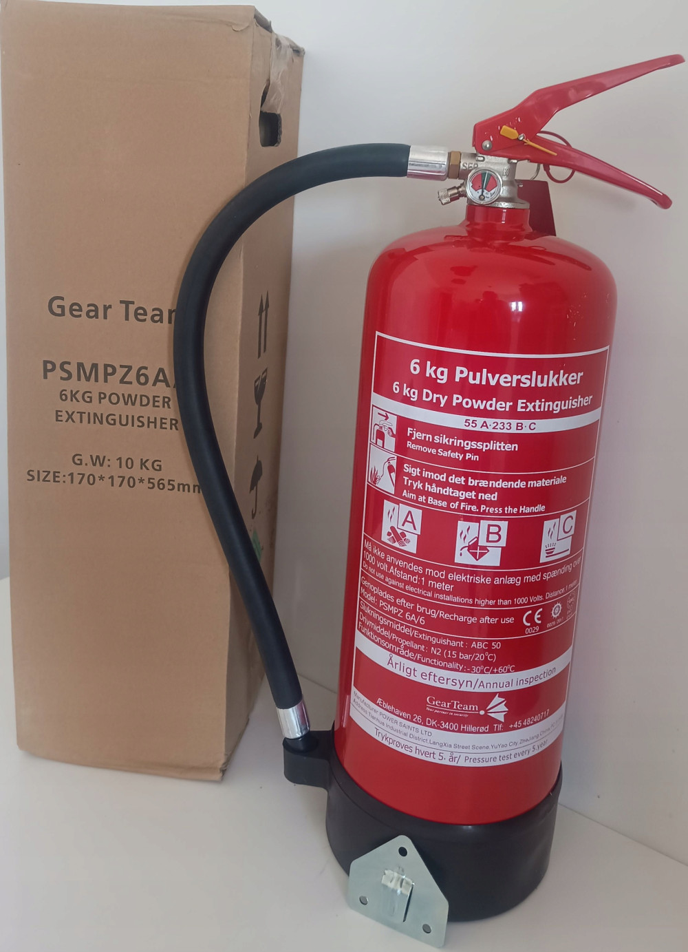 Gaśnica proszkowa 6kg NOWA do gaszenia pożarów z grupy A B C w zestawie z wieszakiem ściennym.