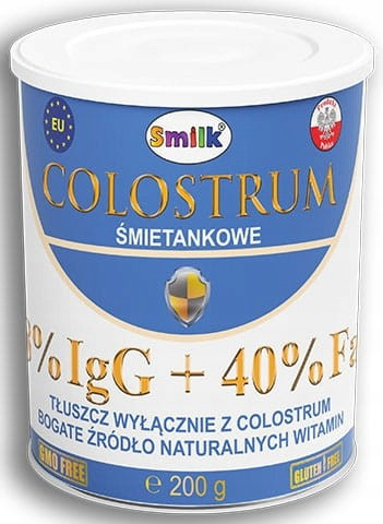 Colostrum (inne nazwy: Młodziwo, Siara, Colostrum Bovinum, Pierwsze Mleko) z tłuszczem pochodzącym z colostrum. Siara jest pierwszym naturalnym pokarmem człowieka, są w niej zawarte wysokie poziomy immunoglobulin. Już teraz możesz naturalnie wspierać odporność. Bogata zawartość witamin A oraz z grupy B, D i C pomagają w utrzymaniu prawidłowego widzenia, funkcjonowania układu odpornościowego i przyczyniaja się do utrzymania prawidłowego metabolizmu żelaza. Colostrum Śmietankowe dedykowane jest zarówno dla osób młodych, które mają problemy skórne m.in. z trądzikiem ale także dla osób starszych z niedoborem witamin i posiadających niską odporność.