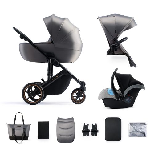 • W ZESTAWIE Z gondolą, siedziskiem spacerowym, stelażem, fotelikiem samochodowym Kinderkraft 0-13 kg, adapterami do fotelika, torbą, przewijakiem, osłoną na nóżki, folią przeciwdeszczową, moskitierą, materacykiem do gondoli.