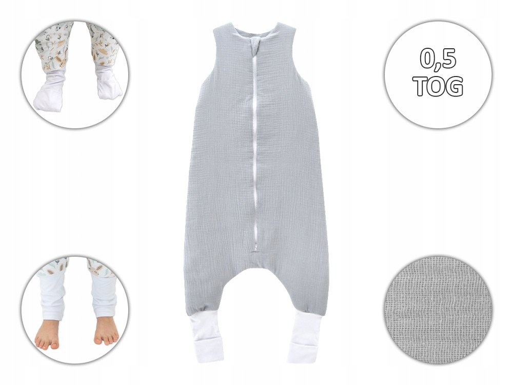 Muślinowy letni śpiworek z nogawkami zakończonymi wywijanymi skarpetkami w rozmiarze M: 86cm - 104cm