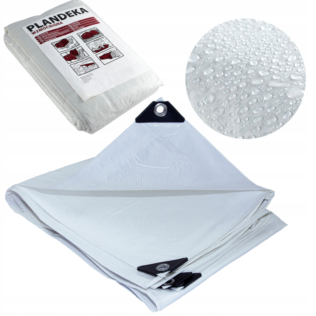 Plandeka Biała Mocna 6x8 m Wodoodporna Wzmocniona