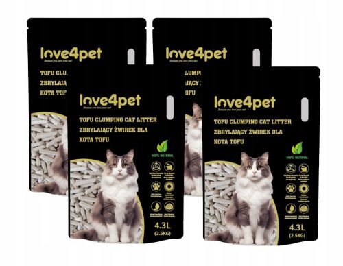 Love4pet Lettiera ecologica agglomerante per gatti tofu 4x2,5kg 4,3L