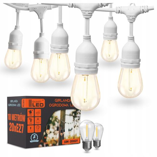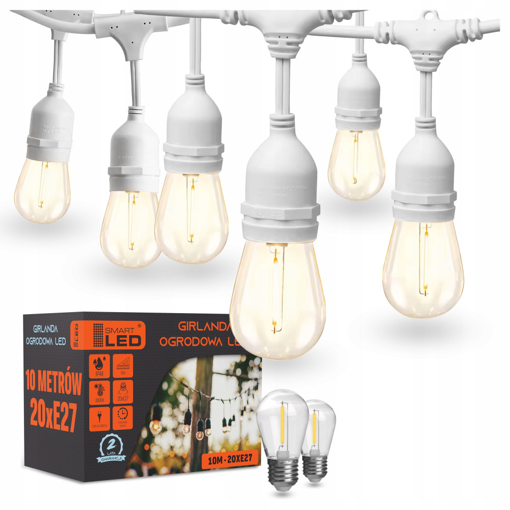 Girlanda Ogrodowa Łańcuch Świetlny 10M 20XŻarówka LED E27 1W Wodoszczelna + 2 żarówki GRATIS