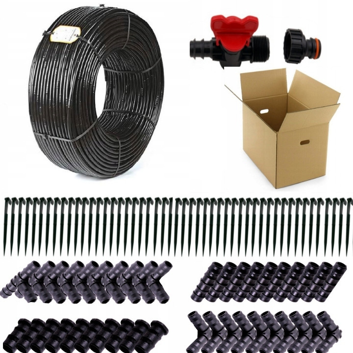 Zestaw nawadniający  100MB 33 cm Linia kroplująca 16mm z zestawem złączek i kotew mocujących