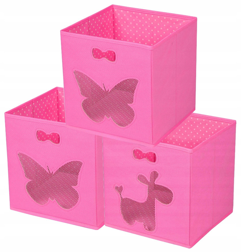 Zestaw trzech pudełek na zabawki dwa motyle i jeden osiołek