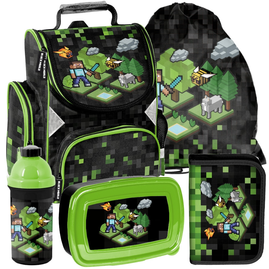 BORSA SCUOLA Zaino PASO MINECRAFT pixels - SET 5 pezzi!!