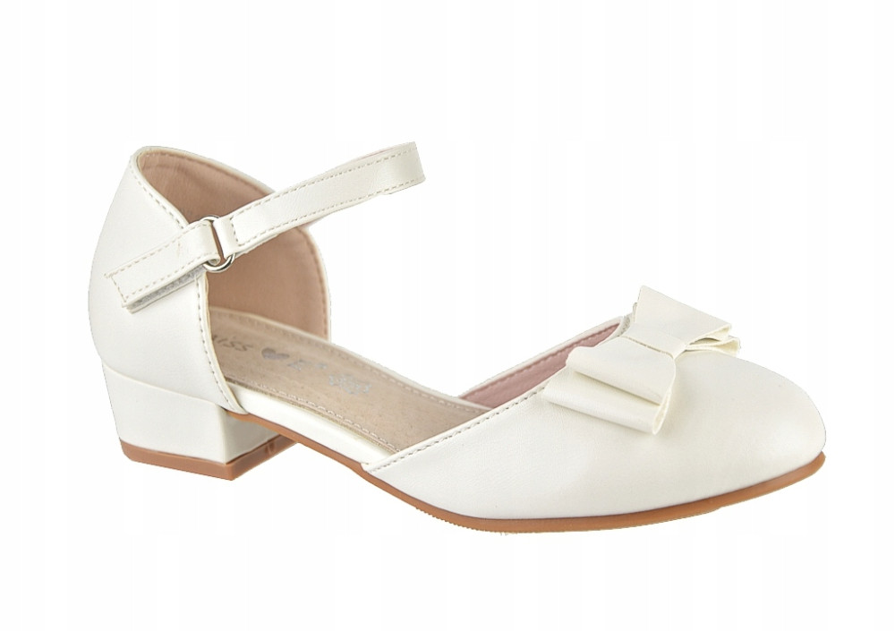 Miss Me skórzane buty komunijne białe baleriny kokardka r.36