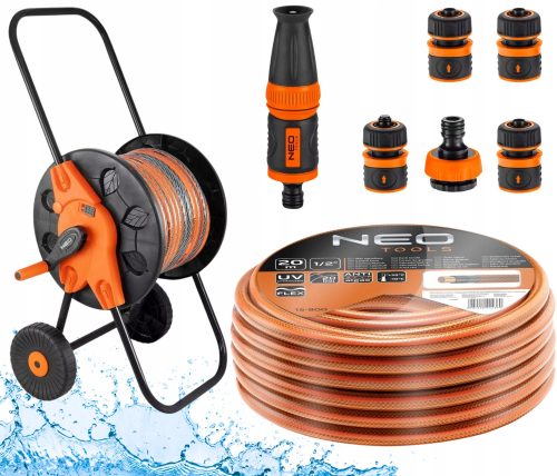 Tubo da giardino NEO Strong 20m 1/2" + avvolgitore + irrigatore + connettori, set