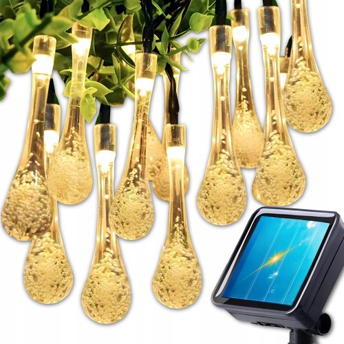 GIRLANDA SOLARNA ogrodowa 20 LED lampki na balkon świetlna kropelki sople