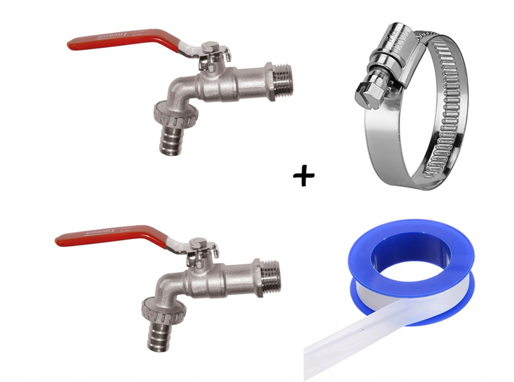 2X KRAN CZERPALNY KULOWY Z KOŃCÓWKĄ METALOWA DO WĘŻA 1/2 + 1X OPASKA ZACISKOWA NA WĘŻA + 1X TEFLON TAŚMA DO WODY