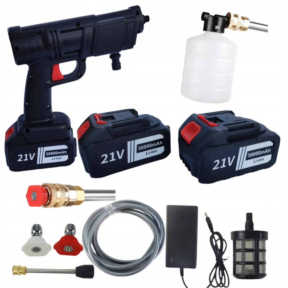 ✔️Zestaw wyposażony jest w dwa potężne akumulatory o pojemności 3Ah każdy, co zapewnia długą i efektywną pracę bez ciągłego ładowania. Wybierając naszą myjkę, nie tylko inwestujesz w najwyższą jakość czyszczenia, ale również wspierasz Polską gospodarkę.